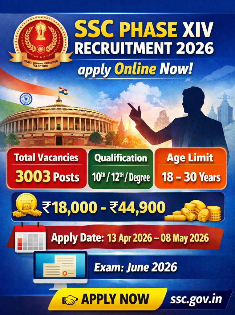 SSC Phase XIV Recruitment 2026 – 3003 Government Jobs | Apply Online 📌 Overview of the Recruitment Through the SSC […]